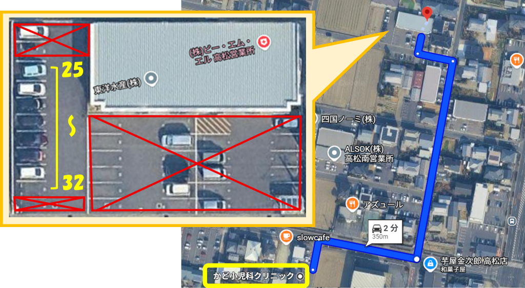 臨時駐車場(本日のみ)として、BML高松営業所様の駐車場を使用できます。